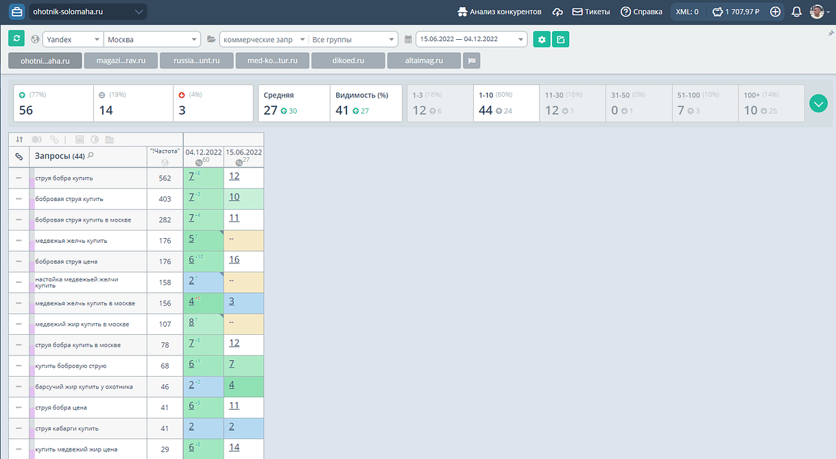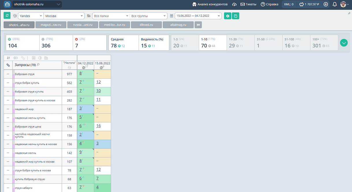 Позиции сайта в Яндексе