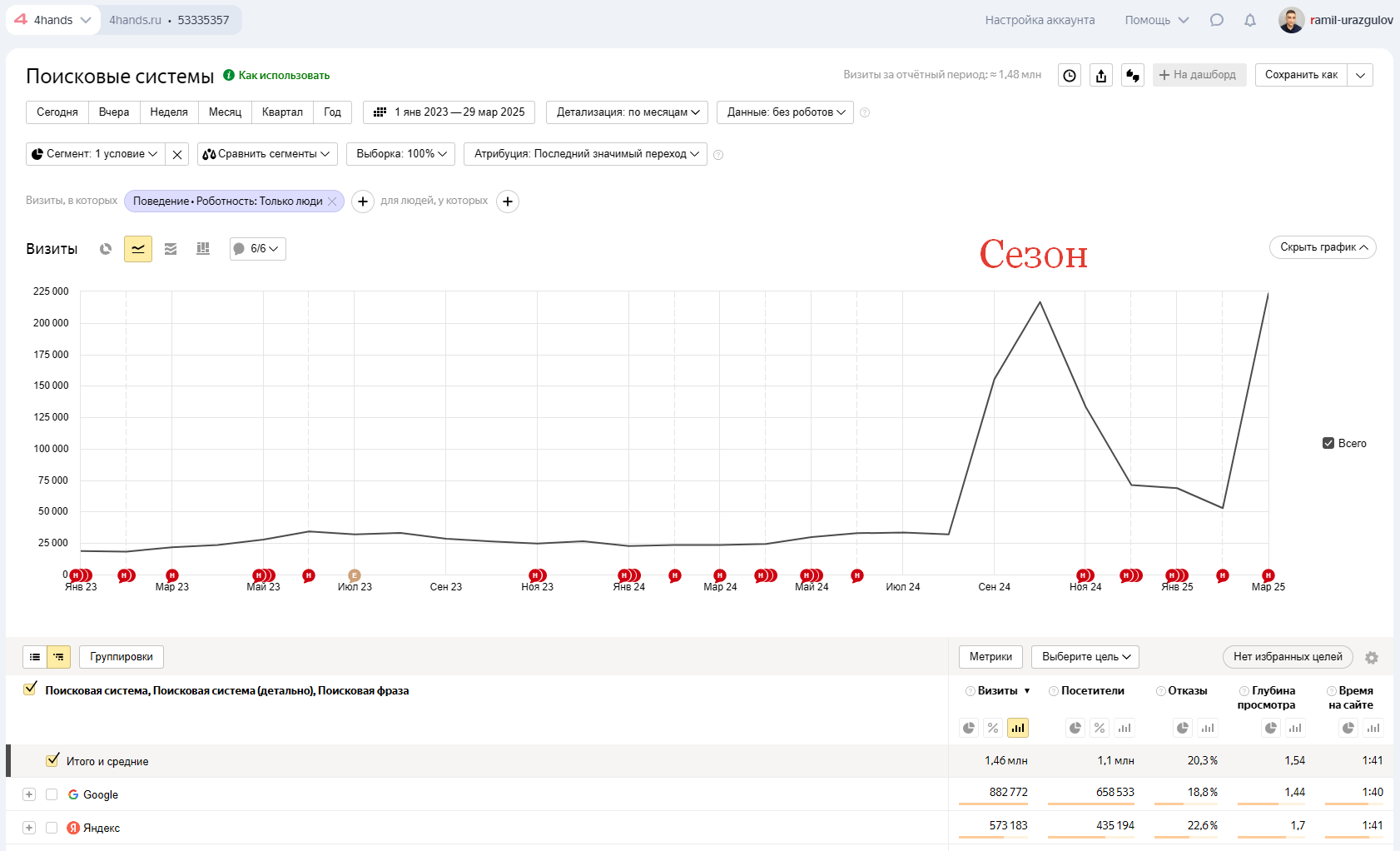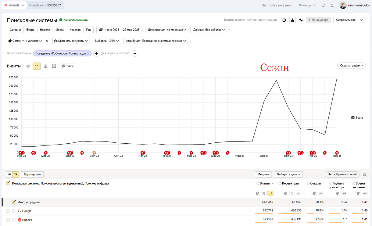 С 25 000 до 225 000 визитов в месяц